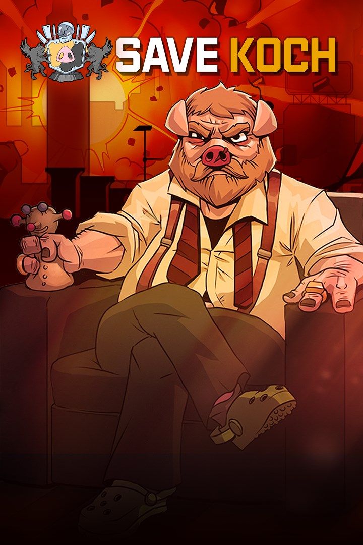 Em Save Koch, você assume o papel de um chefão da máfia que está basicamente sitiado dentro de sua própria sala de pânico. Alguém na cidade decidiu tomar o seu lugar, e há um traidor infiltrado em sua família, agindo enquanto falamos. O tempo está se esgotando, você tem apenas seis dias para desvendar a trama, descobrir quem está por trás dessa conspiração, resolver o problema e enviar o quem o está desafiando para alimentar os peixes.