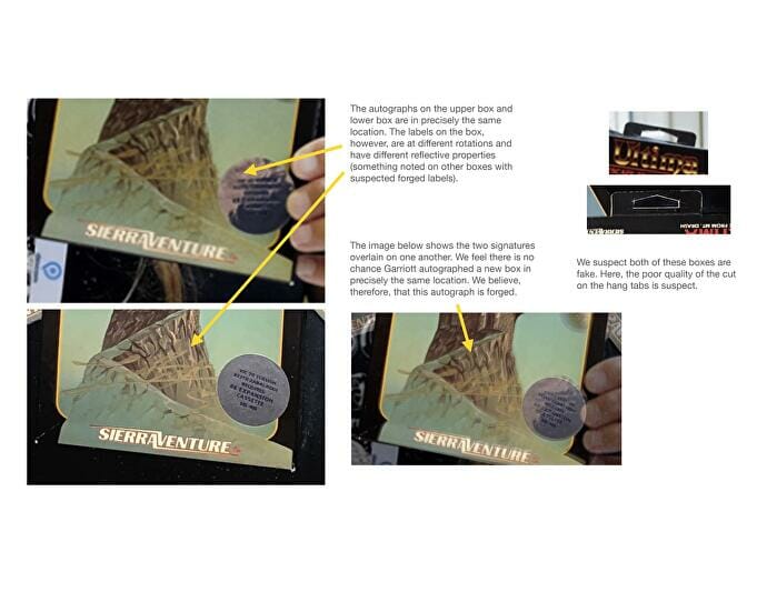 “Aconselho a presumir que eles são falsos, porque nossa investigação descobriu um pouco mais de falsificações do que reais”, disse ainda. A investigação começou depois que um membro comprou Akalabeth, um primeiro lançamento do Templo de Apshai e uma Casa Misteriosa Japonesa de Ricciardi. No entanto, essa pessoa sentiu que algo estava errado em sua nova coleção e confrontou o falsificador sobre sua validade.