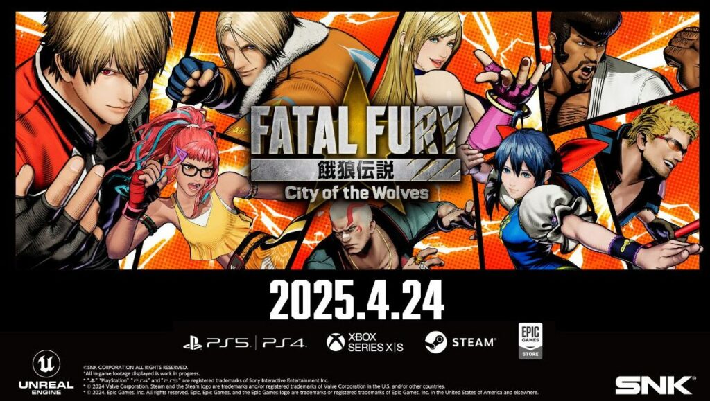 A pré-venda de FATAL FURY: City of the Wolves teve início em 21 de agosto de 2024, na versão Edição Especial, que inclui o Passe de Temporada 1. O passe dá acesso a personagens adicionais lançados ao longo de 2025 até o início de 2026. O game está previsto para ser lançado em 24 de abril de 2025, para PlayStation®5, PlayStation®4, Xbox Series X|S e para PC (via Steam e Epic Games Store).