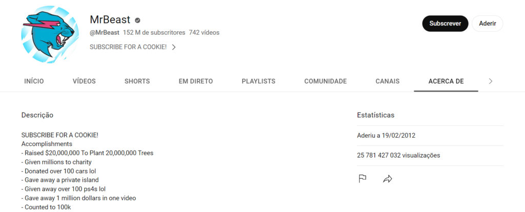 A quantia, apesar de alta, não impacta muito a riqueza de MrBeast, que está avaliada em mais de 25 milhões de dólares e segue crescendo, graças às visualizações em grande escala do canal do youtuber, que já recebeu mais de 25 bilhões de cliques.