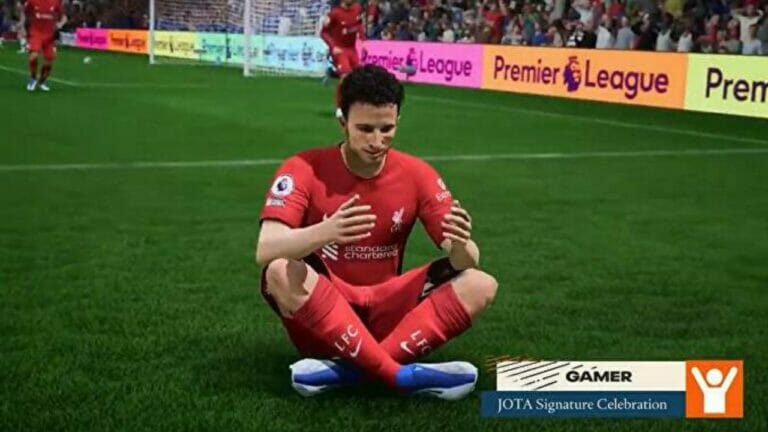 A EA Sports recriou a comemoração especial de Diogo Jota em campo, no FIFA 23, em que ele se senta no chão e começa a ‘jogar FIFA em seu console invisível, na sala de estar.’ No ano passado, o futebolista português precisou abandonar um torneio de FIFA 22, para não atrasar sua equipe do Liverpool na vida real.