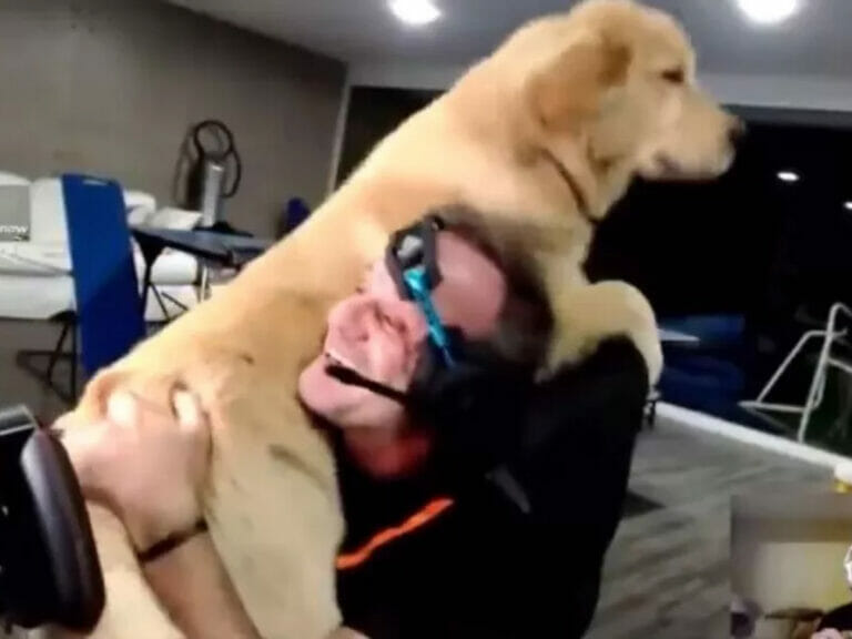 Durante uma live gamer com o piloto Tony Kanaan, Rubinho foi surpreendido pelo seu cão da raça Golden Retriever, que pulou em seu colo e, aos lambeijos, interrompeu qualquer plano de jogatina naquele momento. Confira o momento: