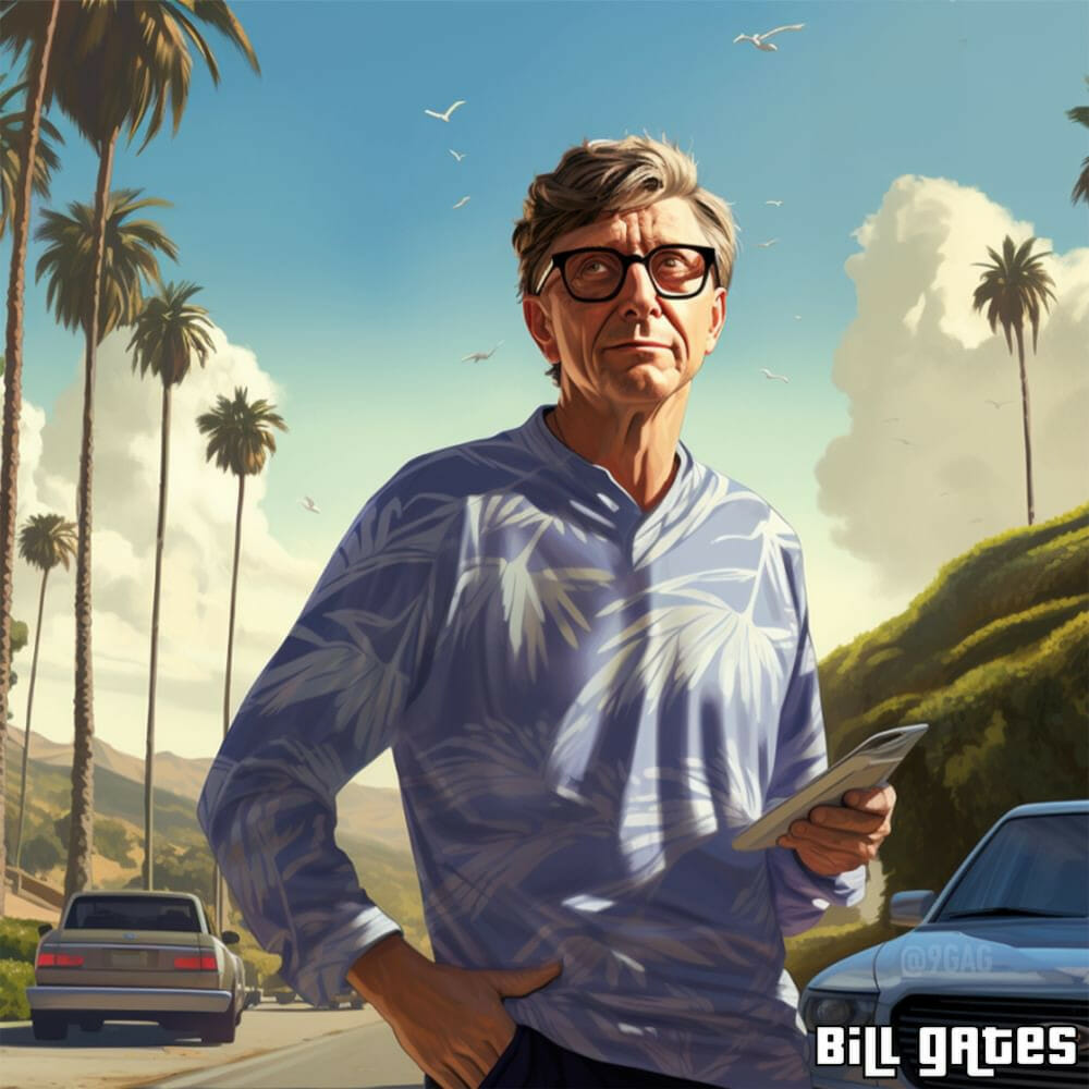 Utilizando uma ferramenta de Inteligência Artificial o portal fez imagens de Elon Musk, Mark Zuckerberg, Bill Gates, Jeff Bezos, Larry Page e Sergey Mihailovich Brin como se fossem personagens do jogo GTA da Rockstar Games. As imagens ficaram no estilo pôster do jogo e os bilionários e donos das empresas mais famosas do mundo, personificaram bem os personagens do jogo. Confira abaixo:
