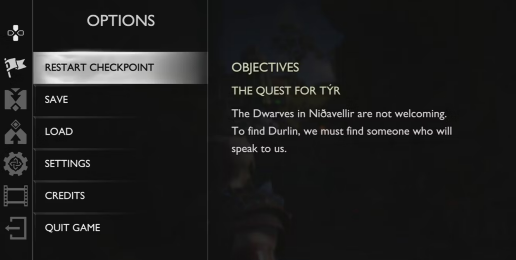 Os jogadores poderão carregar seu arquivo salvo mais recente no menu principal de God of War Ragnarok, mas também existem algumas outras opções disponíveis. Ao pressionar o botão Opções durante o jogo, os jogadores podem voltar rapidamente ao ponto de verificação anterior selecionando a opção “REINICIAR PONTO DE VERIFICAÇÃO” no topo da lista.