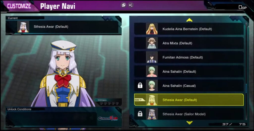 Cada vez que você passa de uma fase no modo arcade, será ganho uma pontuação chamada de “GP” que podem ser usados para conseguir desbloquear novas versões dos operadores, também é possível conseguir GP destruindo mobile suits inimigos a qual irão para uma coleção de mechas da série na galeria, completando uma galeria, o jogador irá ganhar bastante GP.