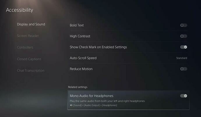 Essa versão beta vai abordar alguns dos problemas de acessibilidade do PS5. Idiomas novos foram adicionados à opção de leitor de tela do console. Russo, árabe, holandês, português do Brasil, polonês e coreano foram introduzidos à lista. Caso você tenha perda auditiva unilateral, saiba que esta versão vai fornecer a opção de selecionar áudio mono para fones de ouvido. Além disso, quando uma configuração estiver habilitada no menu de configurações, ela será exibida com uma marca de seleção clara.