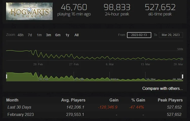 Como o Hogwarts Legacy é puramente um jogo para um jogador, não é surpresa que sua contagem de jogadores simultâneos tenha caído tanto desde o lançamento. Na verdade, os fãs podem esperar que caia mais nas próximas semanas, embora haja oportunidades para o jogo voltar a subir nas paradas do Steam.