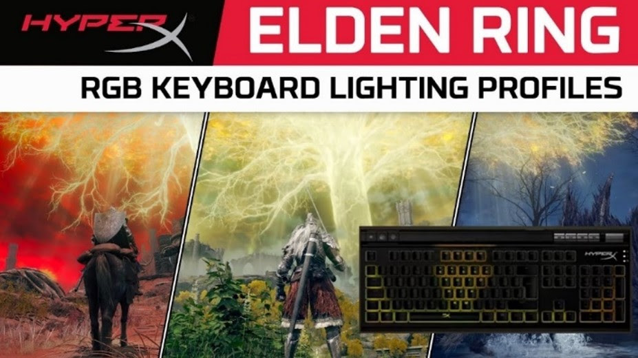 Para Elden Ring, o melhor jogo do ano de 2022, segundo o The Game Awards, a HyperX projetou quatro perfis de teclado que transportam as Terras Intermédias para a área de trabalho do usuário, inclusive com cores baseadas em três das primeiras zonas que os Maculados exploram no game.