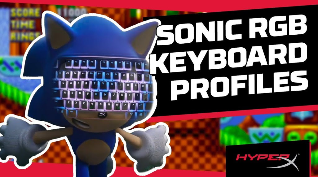 A HyperX reuniu diferentes layouts de retroiluminação de teclado para o ouriço mais rápido do mundo. A primeira destaca seus olhos icônicos, que podem ser vistos sutilmente no centro do teclado com diferentes tons de branco e azul.