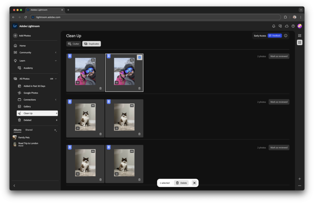 Além disso, o Lightroom agora conta com a ferramenta Find Duplicates, que facilita a remoção de imagens repetidas na biblioteca, além de suporte aprimorado para edição em telas duplas e compartilhamento de arquivos até quatro vezes mais rápido.