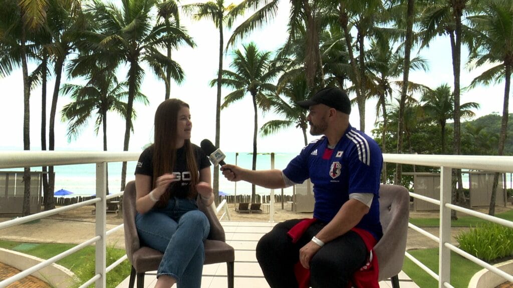 Ariane Rodrigues, gerente de Marketing da Agon by AOC em conversa com o Observatório de Games nas dependências do Jequitimar Resort. (Imagem: Ricardo Almeida)