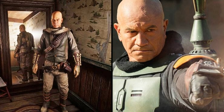 Ao escolher entre a vasta galeria de roupas exclusivas de Red Dead Redemption 2, o usuário do Reddit FlemboiSchmuck recriou notavelmente um dos caçadores de recompensas mais temidos da galáxia. Logo de cara, fica claro que essa interpretação digital de Boba Fett tem tudo, incluindo seu poncho preto, armadura de batalha Mandaloriana e manoplas de pulso. Inspecionando mais de perto, descobre que até a semelhança do ator da franquia, o neozelândes Temuera Morrison, é representada com um grau incrivelmente preciso, com sua cabeça careca e brilho de marca registrada presente no personagem.