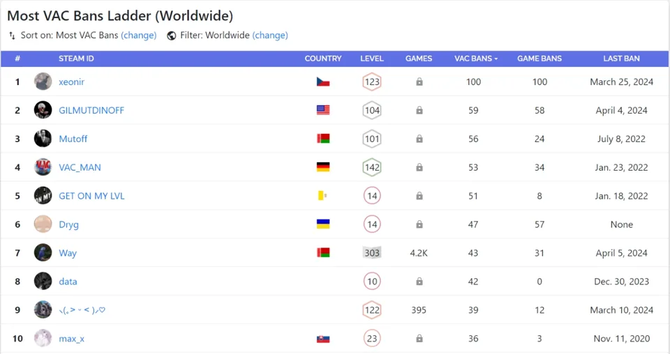 Com mais de 200 restrições em diferentes jogos, Xeonir lidera o ranking global de banimentos no Steam, superando seu rival mais próximo por mais de 80 proibições, conforme relatórios do SteamLadder. Em uma conversa com um desenvolvedor, ele se descreveu como um “colecionador de banimentos“. No entanto, não se trata apenas de trapacear para obter vantagens; para Xeonir, usar hacks é a essência de sua experiência com videogames. Ele não busca prazer na trapaça em si, mas sim na consequência de ser banido por usá-la.