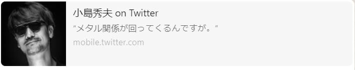 Um post de Hideo Kojima em seu Twitter de ontem deixou os fãs de Metal Gear em alvoroço. E assim como misteriosamente ele foi escrito com a chamada “Coisas relacionadas ao metal estão surgindo”, surpreendentemente ele desapareceu hoje por volta das 11h30 da manhã, horário de Brasília. O que ele quis dizer com isso, deixou a comunidade meio que em pânico.