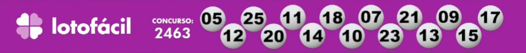 Neste sábado (5), a Caixa sorteou o concurso 2463 da Lotofácil, cuja premiação até o início do sorteio está estimada em R$ 1.500.000,00. Confira abaixo os números do sorteio: