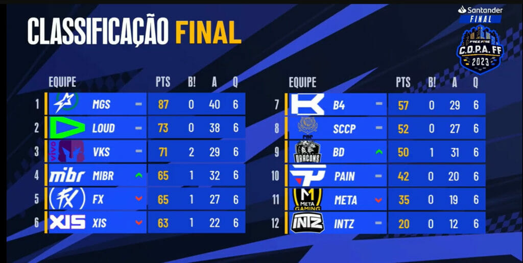 Magic Squad é a equipe campeã da C.O.P.A. Free Fire 2023, com 87 pontos. Com o tema “Largada 2023”, a edição 2023 da C.O.P.A. FF teve sua final hoje (25) e foi transmitida nos canais oficiais do Free Fire no YouTube, na Twitch, e no TikTok, com o patrocínio do Santander e da Kellogg’s®.
