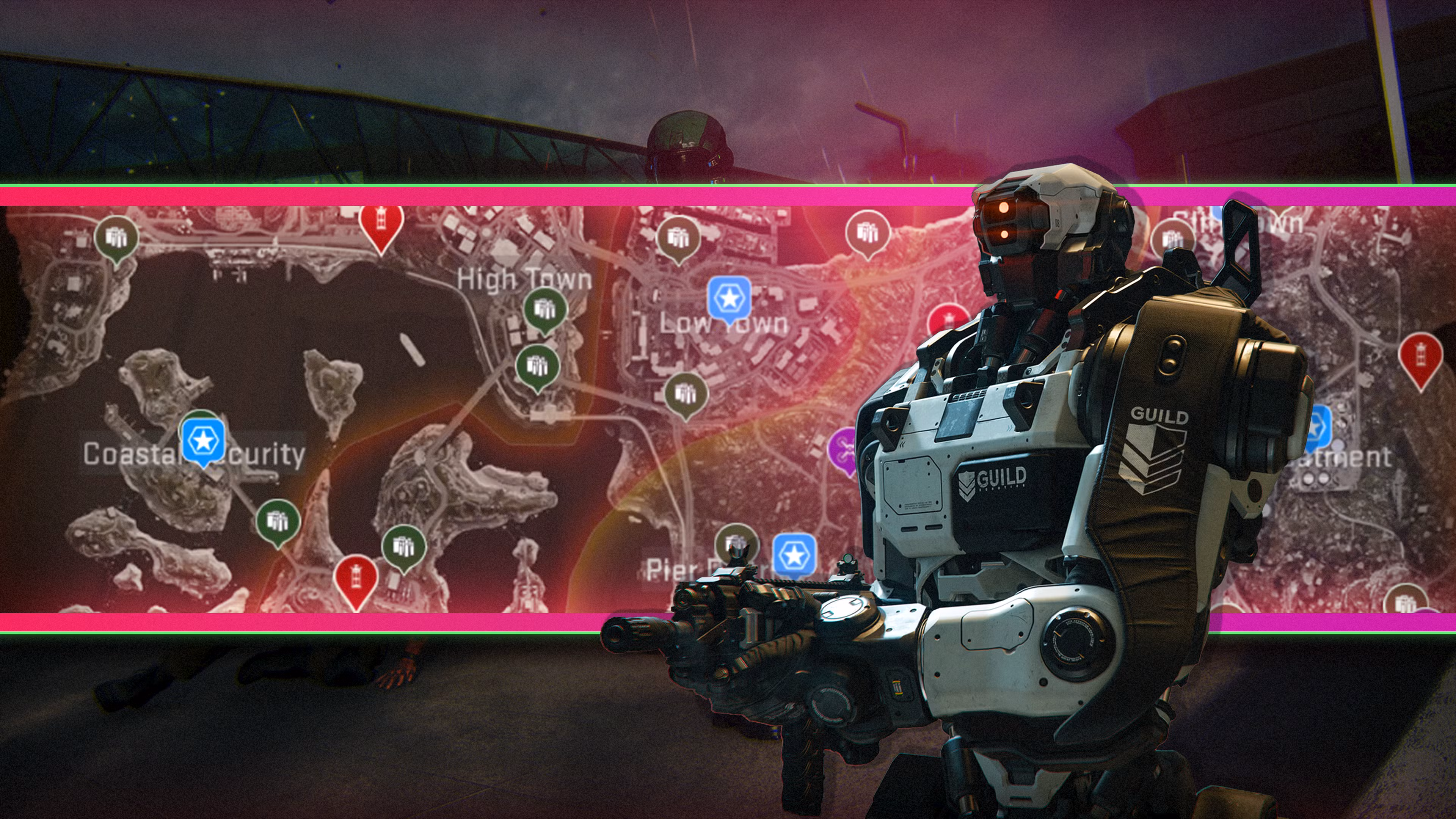 Nosso mapa aponta áreas-chave, além de onde encontrar itens como esconderijos de munição e armadilhas, além de pontos de referência úteis, como mesas de artesanato, exfils, bancadas de trabalho e reposicionamento de drones.