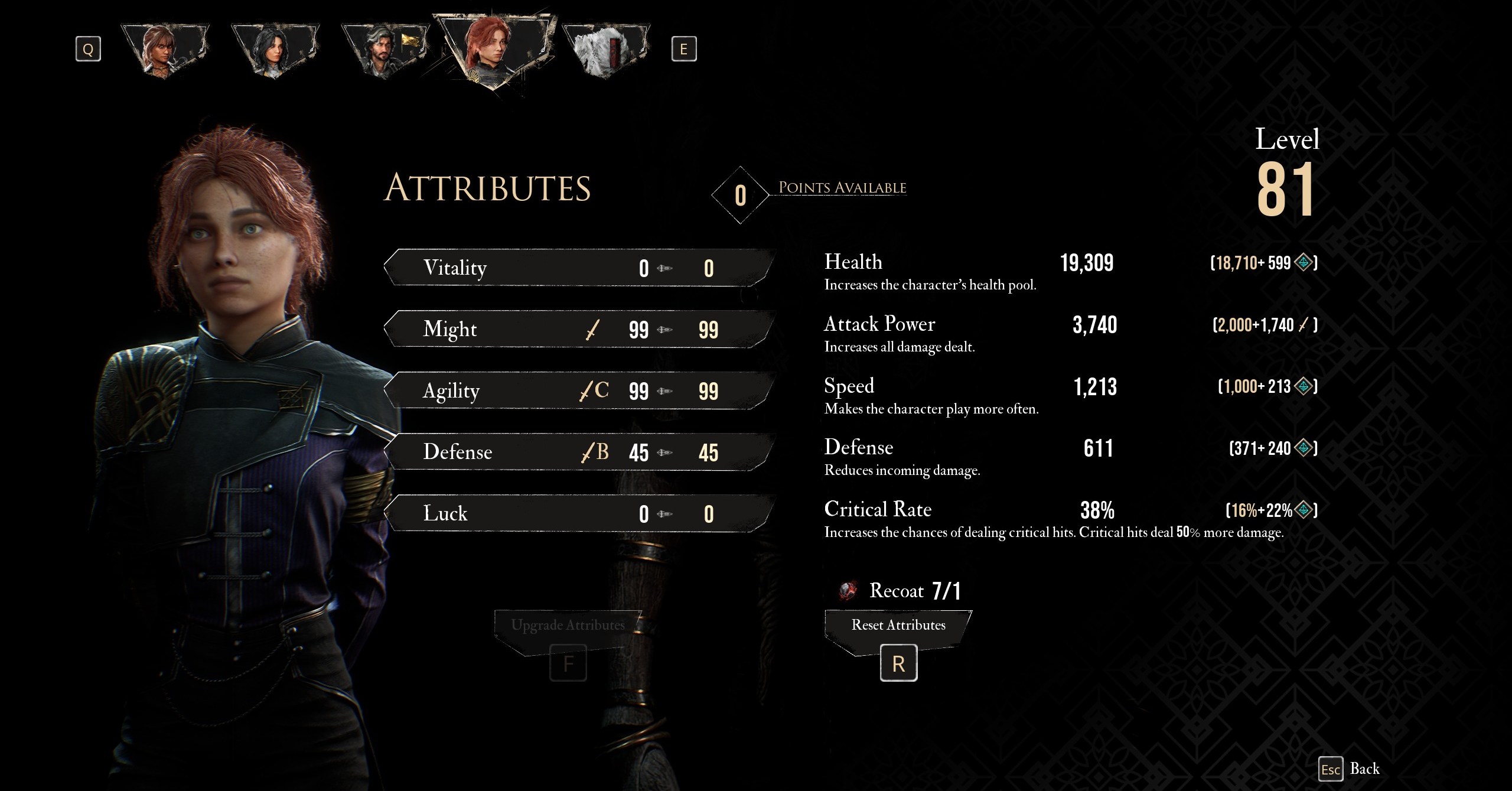 Você deseja priorizar diferentes atributos para Maelle, dependendo de quão longe você está no jogo. E lembre -se, você pode usar um RECOAT para reatribuir pontos de atributo.