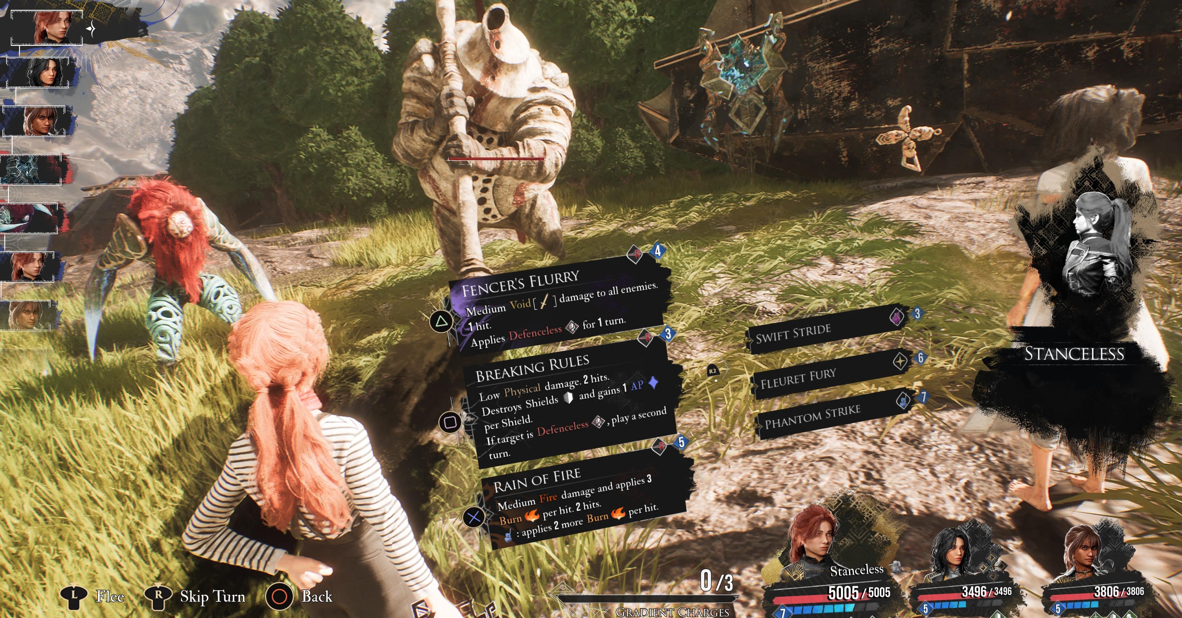 A última chance é o seu movimento “Voltar ao virtuoso” pelas poucas vezes em que seu primeiro turno Stendhal não é suficiente para acertar seu alvo. O Payback é uma habilidade que recompensa os bons jogadores, dando-lhes acesso a um movimento de alta dano que pode quebrar os alvos a um custo de habilidade que escala diretamente com ataques parados. O Momentum Strike acrescenta sinergia com o resto da festa. Breaking Rules é uma habilidade de utilidade para inimigos que empilham escudos, e o Sword Ballet oferece uma opção focada em crítica.