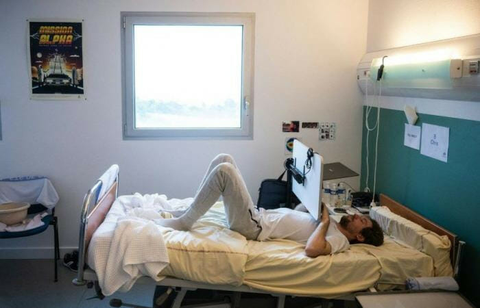 “Temos condições muito favoráveis para permanecermos deitados. Sempre que precisamos de alguma coisa é só chamar a equipe médica“, diz Matthieu.