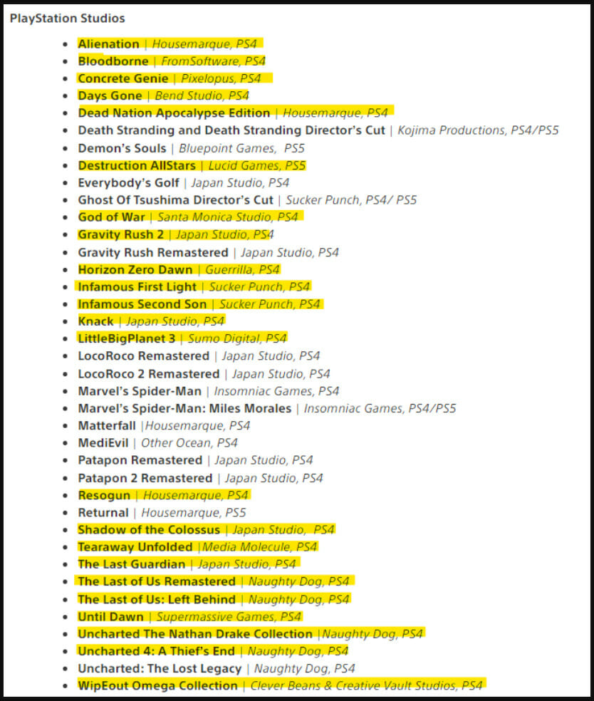 Há algumas ressalvas a serem apontadas com a lista inicial de Schneper. Por um lado, alguns dos jogos eram gratuitos em uma região, mas não em outras, como foi o caso de Gravity Rush 2. Gravity Rush 2 já foi um dos jogos PS Plus gratuitos no Reino Unido, mas não foi distribuído gratuitamente nos E.U.A e muitas outras regiões. Em segundo lugar, a lista ignora Resident Evil, que também era gratuito no PS Plus em um ponto no tempo.