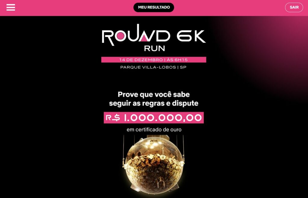 Quem sair do labirinto e apertar o botão do totem referente à sua porta primeiro será o grande vencedor do Round 6K Run e receberá o prêmio de R$ 1.000.000,00 em certificado de ouro.