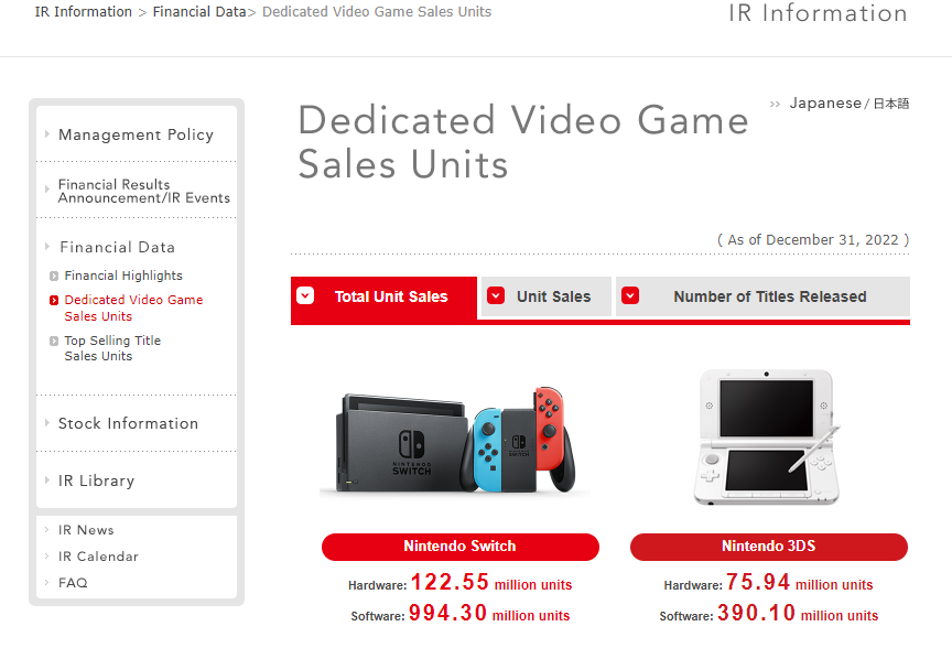 Com este último marco, o Nintendo Switch se tornou o terceiro console mais vendido de todos os tempos, logo após o DS e o PS2, cujas vendas vitalícias estão em torno de 154 milhões e 158 milhões de unidades, respectivamente. Para tornar as coisas ainda mais impressionantes, o Switch conseguiu atingir 120 milhões de vendas em menos de seis anos, o que o torna o console de venda mais rápida a atingir essa marca.