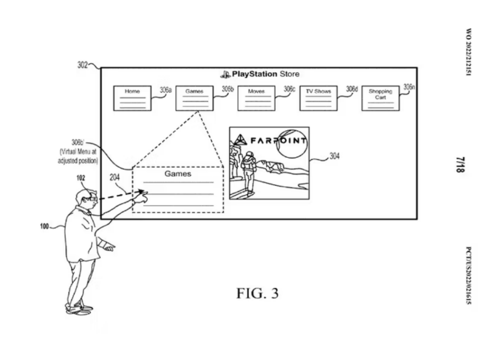 A própria patente detalha que o objetivo do sistema é monitorar sempre que um jogador tenta interagir com objetos dentro do mundo da realidade virtual enquanto usa o headset e os controles do PS VR2. Como resultado desse monitoramento, ele tenta saber onde o jogador pode interagir e, em seguida, move dinamicamente os menus para colocá-los na área mais facilmente acessível.