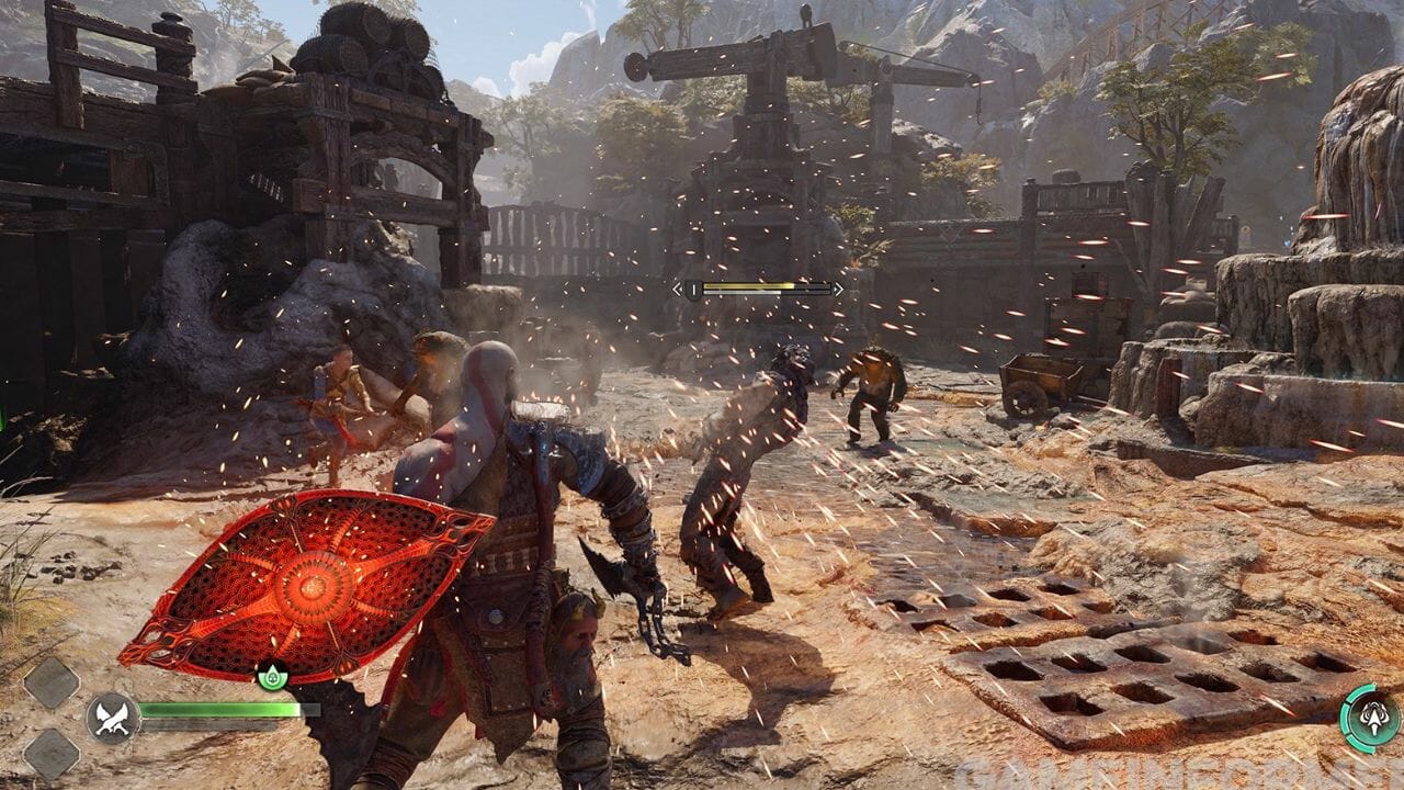 Kratos também pode usar vários novos escudos, incluindo os Dauntless e Stonewall. Ao aparar no último momento possível, o primeiro pode ser usado para desencadear um ataque esmagador que arremessa e atordoa os inimigos.