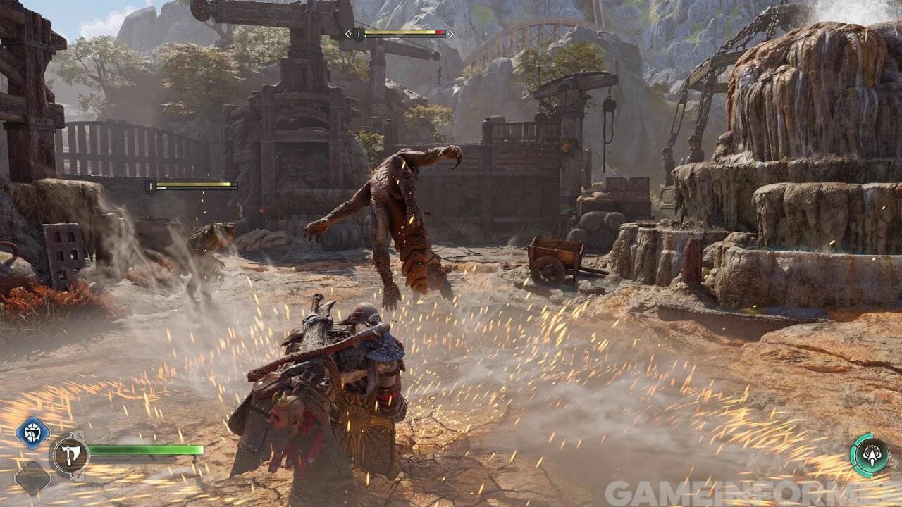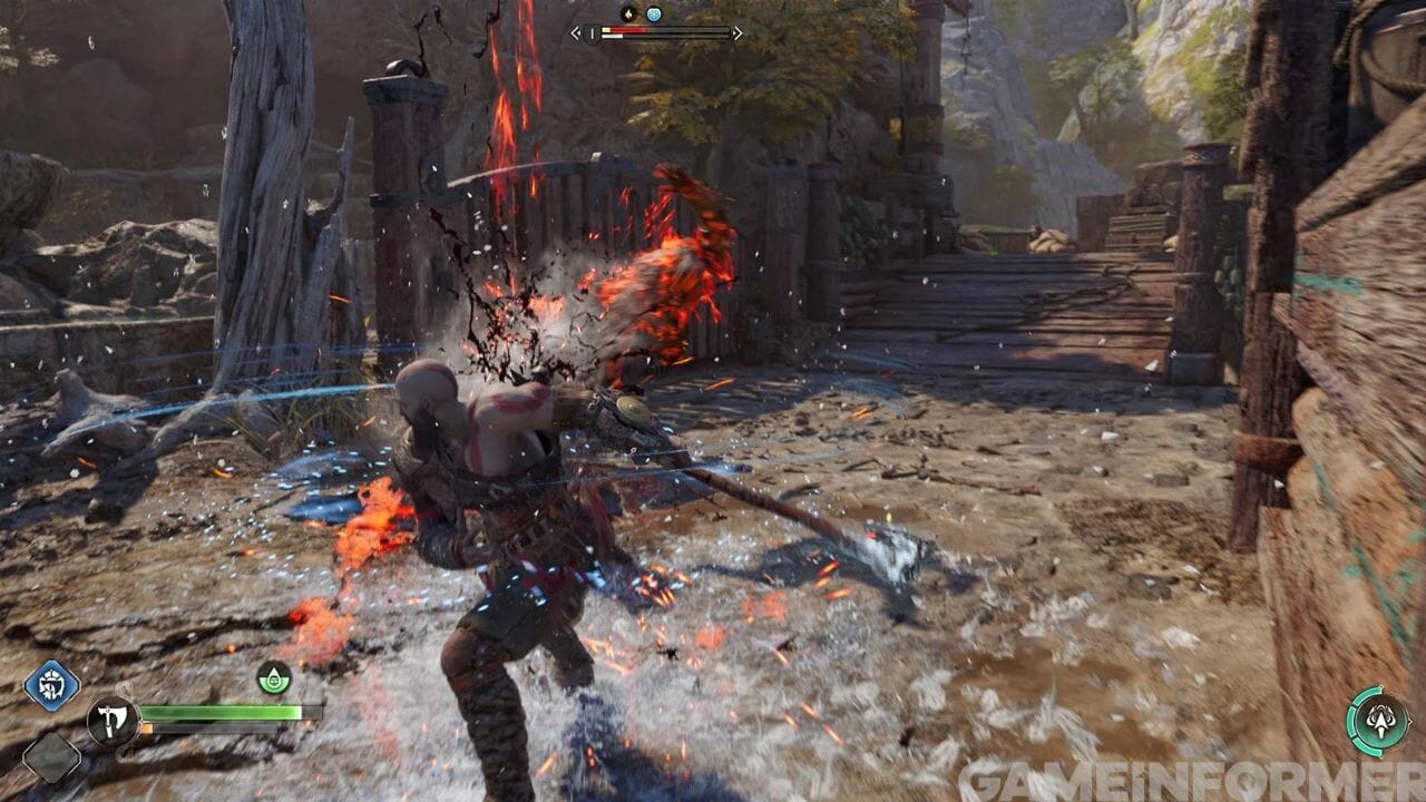 Ele contou ainda que uma maneira pela qual a sequência faz isso é introduzindo “um conjunto totalmente novo de movimentos” para Kratos que são acessíveis através do botão triângulo. Em God of War de 2018, pressionar triângulo lembrava o machado do protagonista, não fazia nada se já estivesse em sua posse ou mudava para o machado se Kratos tivesse as Lâminas do Caos equipadas.