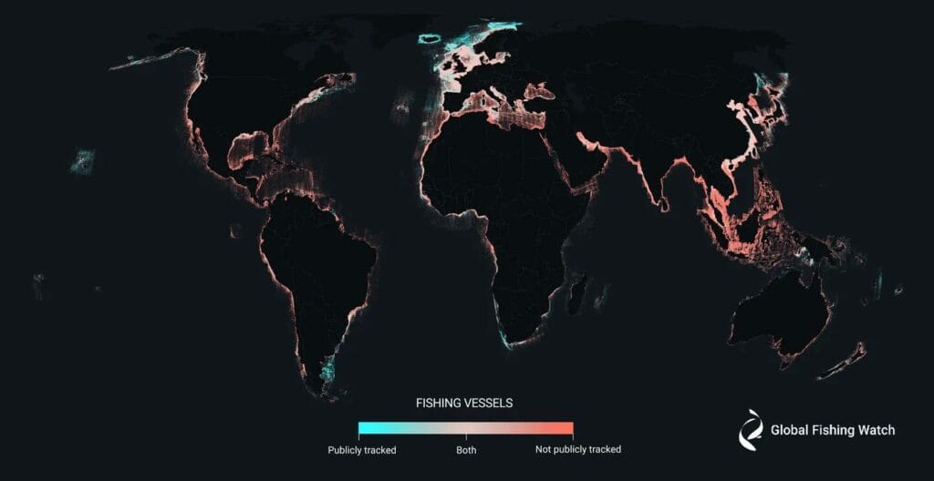 Os mapas foram publicados na revista Nature. A pesquisa liderada pela organização sem fins lucrativos Global Fishing Watch, apoiada pelo Google, revelou que três quartos dos navios de pesca industrial do mundo não são rastreados publicamente. Até 30% das embarcações de transporte e energia também escapam ao rastreamento público.