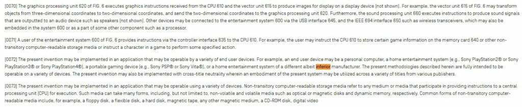 Independentemente disso, a patente cita um PC, PS2, PS3, PS4, PSP e PS Vita como exemplos de dispositivos em potencial com os quais o controle pode ser usado, terminando com “ou um sistema de entretenimento doméstico de um fabricante diferente, embora inferior“. A patente deixa claro em outro lugar que “sistema de entretenimento doméstico” se refere a consoles, então este comentário é obviamente direcionado à Microsoft e à Nintendo.