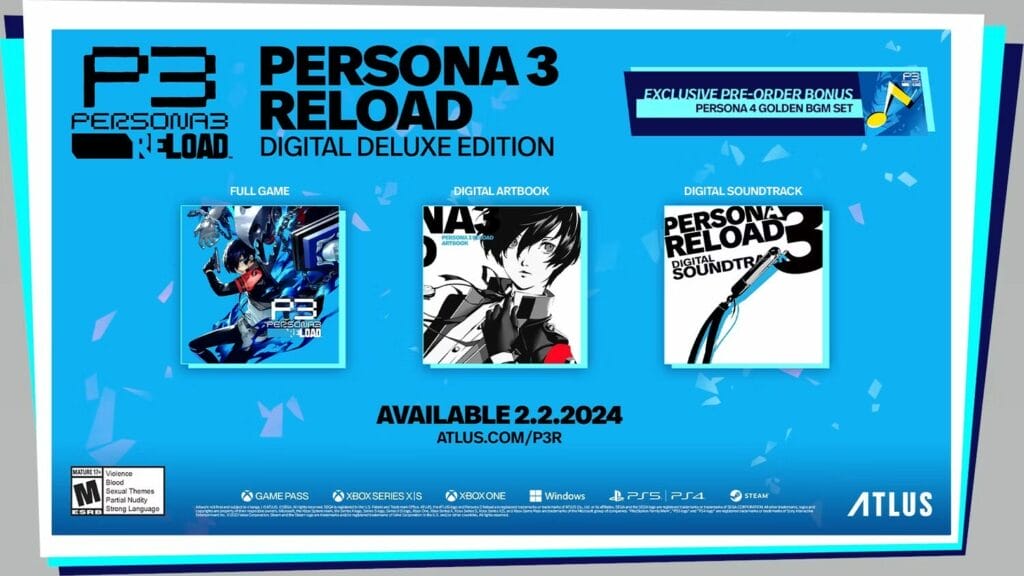 Se você deseja a versão digital do Persona 3 Reload, mas com alguns extras, a Digital Deluxe Edition é para você com certeza! Esta edição do jogo inclui Persona 3 Reload, um artbook digital e a trilha sonora do jogo (também digital). O Persona 3 Relad Digital Deluxe Edition é um pouco mais cara e custará R$ 379,00 no Xbox e R$ 399,40 no PlayStation.