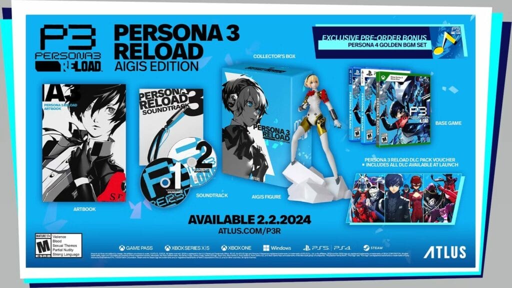 Todo o DLC da Digital Premium Edition também está incluído. O bônus exclusivo da Edição Aigis é a Figura Aigis que você pode expor em sua estante. Tudo isso vem em uma linda caixa com Aigis.