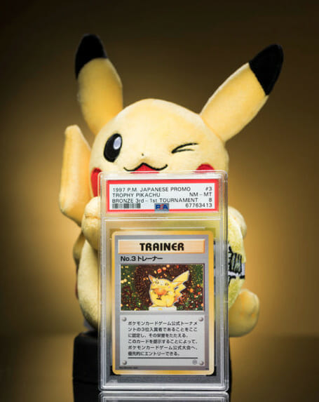 Um card Pokémon incrivelmente raro de 1997 foi vendido por US $ 300.000 (cerca de 1 milhão de reais) em leilão. O card em questão é o Trophy Pikachu No. 3 Trainer Bronze que só foi concedida a participantes selecionados em um torneio japonês. Leiloado pela Heritage Auctions, o card foi uma das apenas quatro cópias certificadas pela PSA.