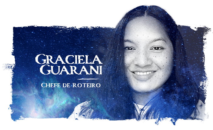 É o caso de Graciela Guarani, chefe de roteiro do projeto, pertencente à grande Nação Guarani e Kaiowá de MS. No currículo de Graciela está a participação no time de direção na segunda temporada da série “Cidade Invisível” – NETFLIX. É uma das cineastas indígenas pioneiras e mais atuante em produções audiovisuais no cenário do cinema Brasileiro.