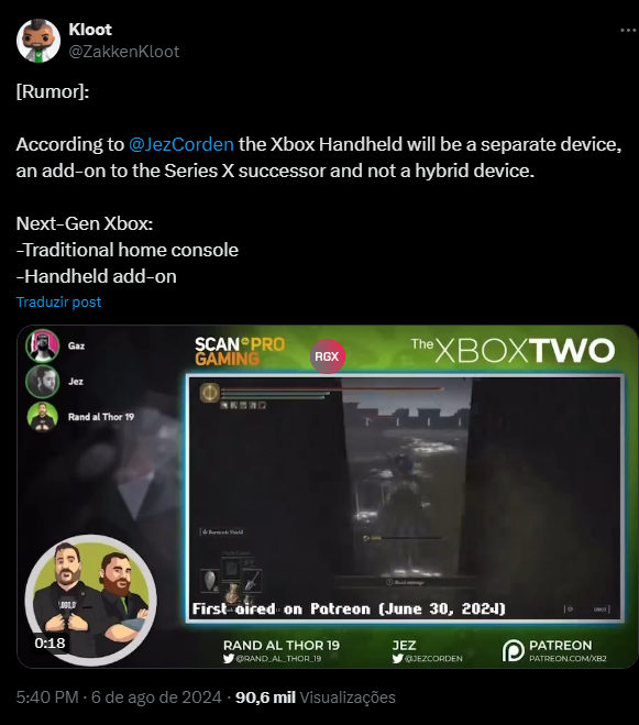 Segundos Jez Corden, os protótipos já foram desenvolvidos. Um dos apresentadores do podcast oficial do Xbox e jornalista do Windows Centra, supostamente já sabe que a Microsft desenvolveu e testou vários protótipos diferentes. De acordo ainda com Corden, eles deveriam ser consoles Xbox e não dispositivos para o Windows, além disso, o próximo Xbox não será um console híbrido como o Nintendo Switch e segundo ele, será feito dois consoles: um portátil e um console de mesa. Confira a postagem abaixo ou clicando aqui.