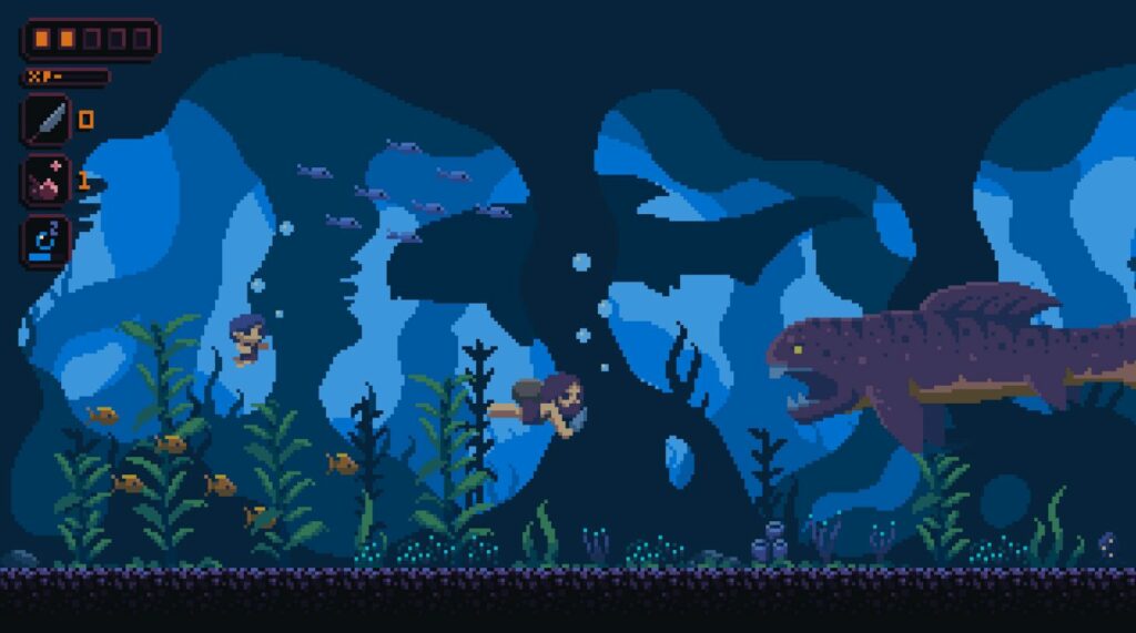 - Visual marcante: Pixel art detalhada, com cenários exuberantes e iluminação caprichada.