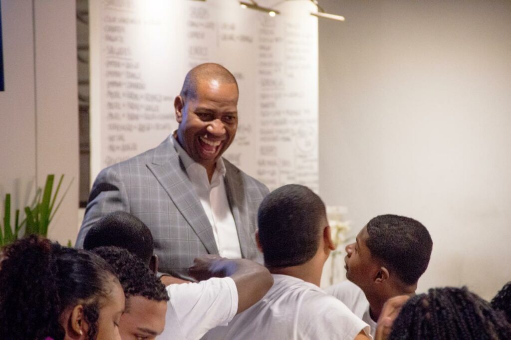 Derick Warren,mantenedor do Brigde, respondendo ao jovens, compartilhou sua trajetória, enfatizando que, apesar de ser negro e vir de uma cidade pequena, não desistiu de seus sonhos. Warren ressaltou a importância de batalhar com uma mentalidade vencedora e resiliente.Continuou seu discurso destacando que “o mundo não é igual” e que “a cor que se respeita é a do dinheiro…ela fala mais alto”. O filantropo explicou que, mesmo após alcançar uma posição de destaque como empresário e filantropo, continua se atualizando para não ficar aquém, visto que a competitividade no mercado permanece acirrada, mesmo em seu patamar de carreira.