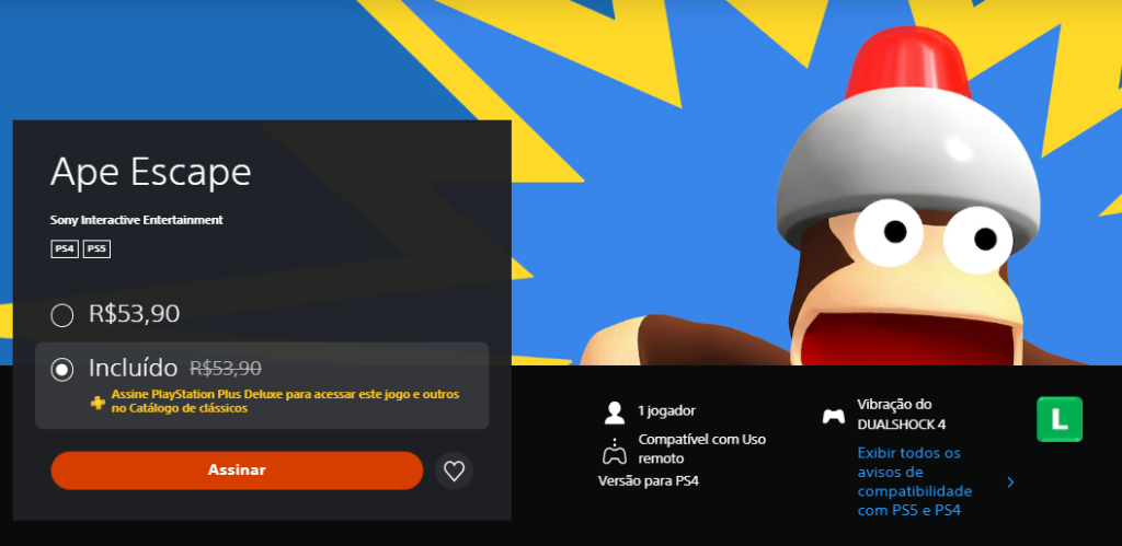 Curta Ape Escape, originalmente lançado no console PlayStation, agora melhorado com nova renderização, opção de retroceder, salvamento rápido e filtros de vídeo personalizados. Uma horda de macacos roubou a máquina do tempo do Professor e viajou pela história para alterar o passado e garantir que os macacos governem o mundo. Cabe a Spike (e à sua coleção de dispositivos incríveis) salvar o dia.