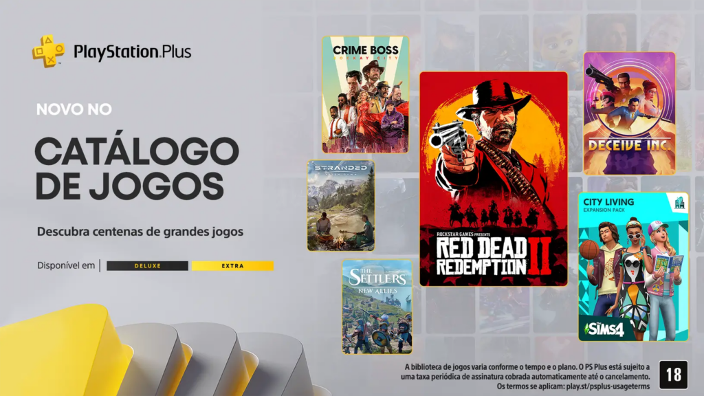 Testemunhe o fim do Velho Oeste, seja o melhor agente secreto do mundo, torne-se a nova estrela em ascensão do submundo das gangues, desbrave um mundo alienígena e muito mais com as adições ao Catálogo de Jogos PlayStation Plus de maio! Red Dead Redemption 2, Deceive Inc., Crime Boss: Rockay City, Stranded: Alien Dawn e muito mais títulos estarão disponíveis a partir de 21 de maio. Também anunciaremos os novos títulos clássicos que chegarão para PlayStation Plus Deluxe.
