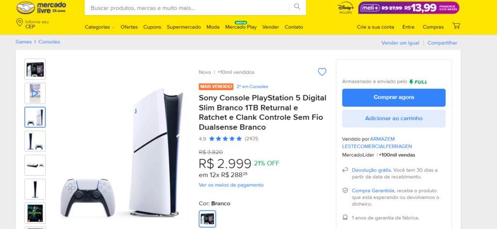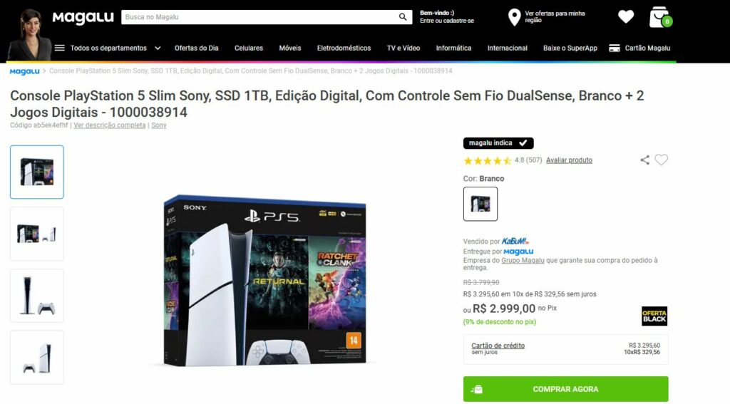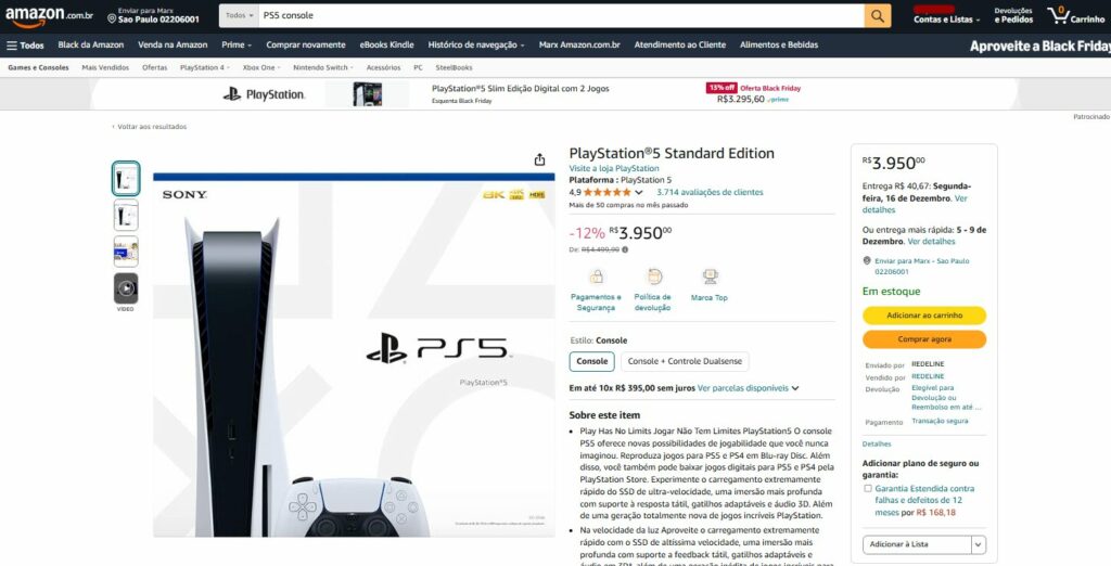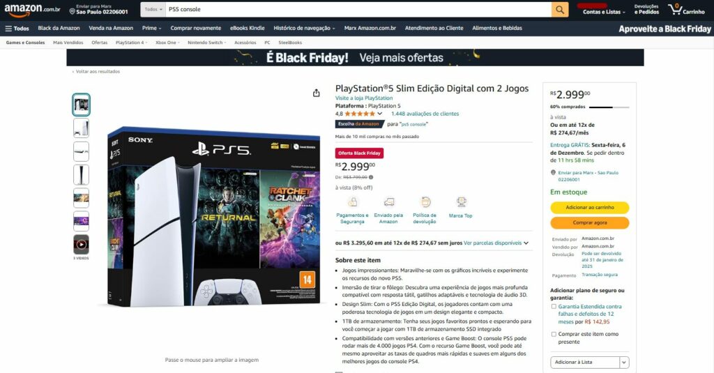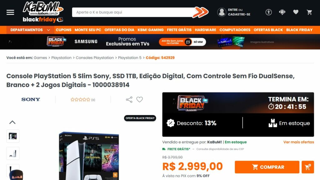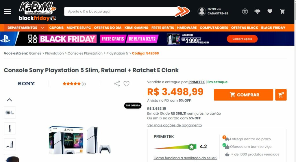 Afim de garantir transparência e desencontro com atualizações feitas pelos anunciantes, printamos as telas com as ofertas para que o interessado possa conferir posteriormente para que preço o console foi. Sem muitas delongas, confira abaixo os preços mais baratos que achamos para o PS5 durante essa Black Friday 2025