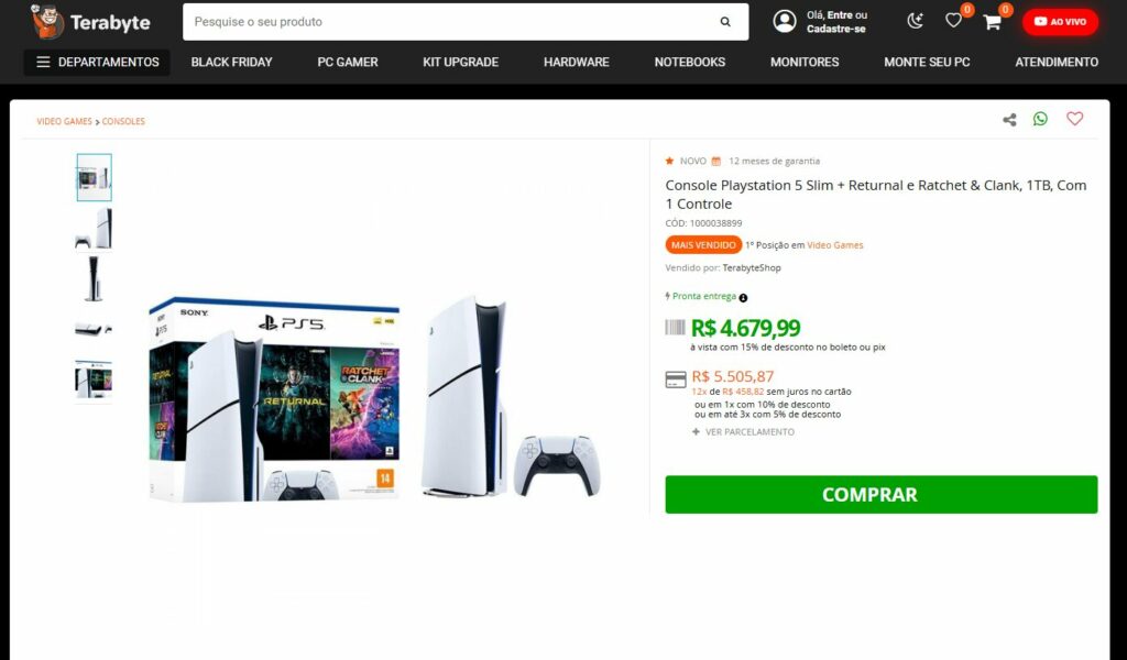 PS5 Slim com mídia física + 2 jogos (Returnal + Ratchet E Clank)
