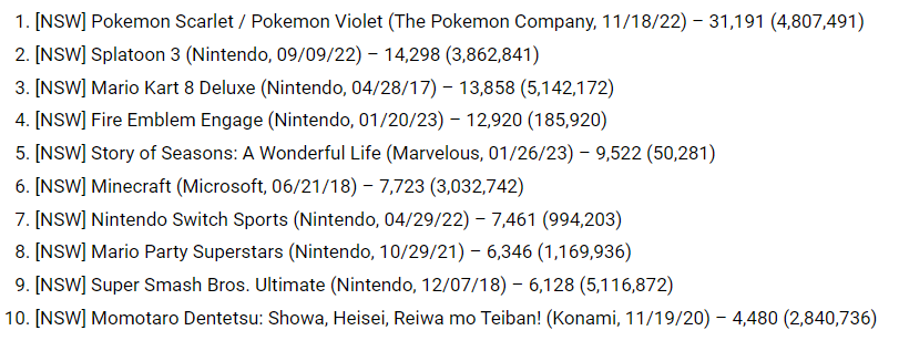 A empresa havia prometido que o estoque melhoraria em 2023 e, até agora, está bom. A preocupação para os superiores do PlayStation será que o software ainda não está mudando – pelo menos não fisicamente, de qualquer maneira. Mais uma vez, os dez primeiros gráficos de software em caixa são compostos por lançamentos do Nintendo Switch, sem nenhum título de PS5 ou PS4 na lista.