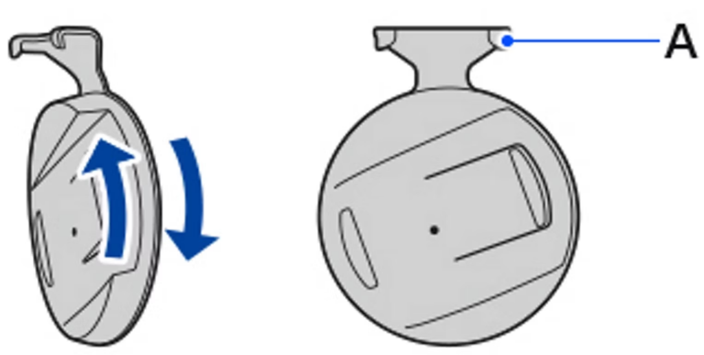 O PS5 vem embalado com um suporte, que se parece com um grande círculo preto com um gancho de duas pontas (marcado como A, acima) preso a ele. O círculo pode ser girado 90 graus, com um ângulo suportando o PS5 para posicionamento vertical e o outro trabalhando horizontalmente. Os proprietários do PlayStation 5 podem colocar o console de lado, destacando e movendo o suporte nele.
