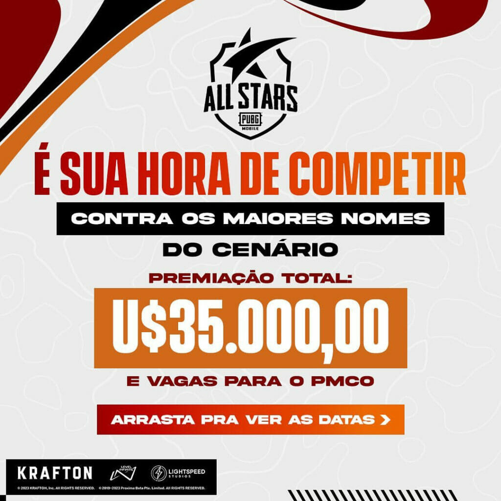 O cenário competitivo do PUBG MOBILE está repleto de novidades, e este ano teremos o PUBG MOBILE All Stars, um torneio que envolve times da comunidade, da PMPL Brasil e influenciadores convidados. O campeonato acontecerá neste fim de semana e terá US$ 35 mil de premiação total.