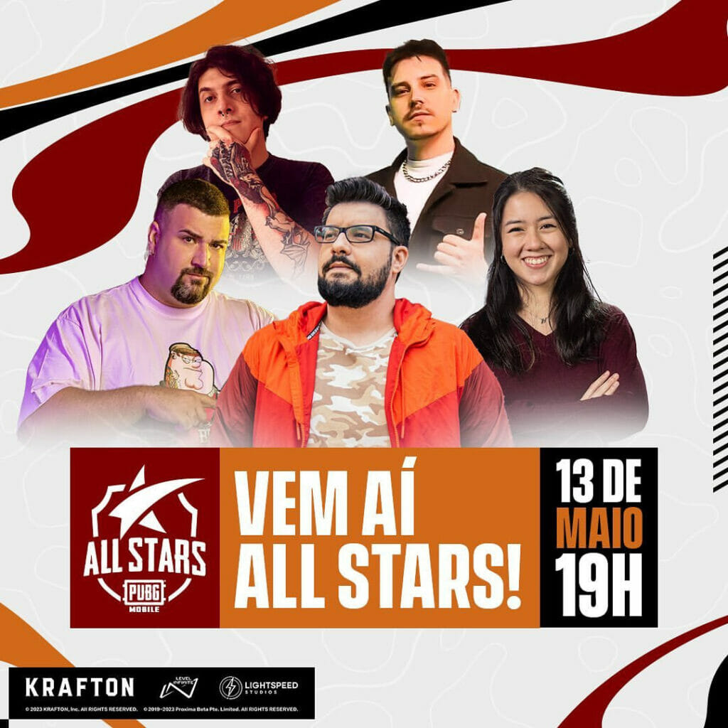 O PMPL All Stars será transmitido neste sábado (13) e poderá ser assistido através do canal do PUBG MOBILE Brasil no YouTube a partir das 19h horas (horário de Brasília). A transmissão será comandada por Diego Hads, Ferzote, Khaya, Murillo Shooow e Pew3x.