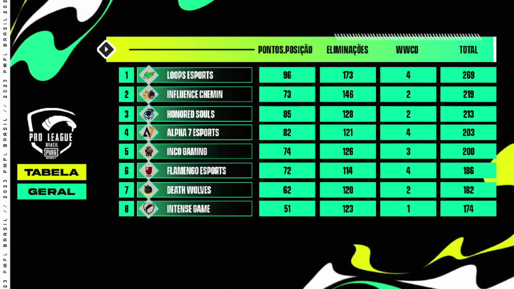 Além dos nomes já conhecidos, ao longo do campeonato vimos a Death Wolves, novata na competição, chegando a ficar em segundo lugar na tabela e brigando pelo top 10. O time formado por jogadores já conhecidos no cenário, acumula 231 abates, duas vitórias e mais de 54 mil de dano.