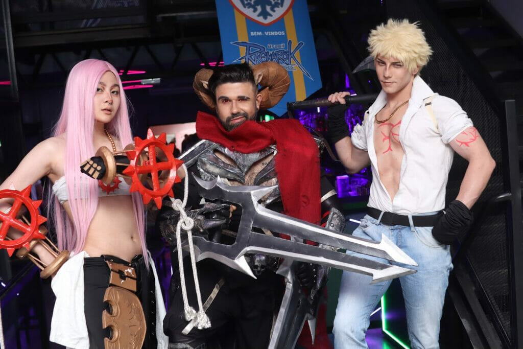 Cosplayers Naoto, Leon Martins e Vince. Imagem/Reprodução: Level Up