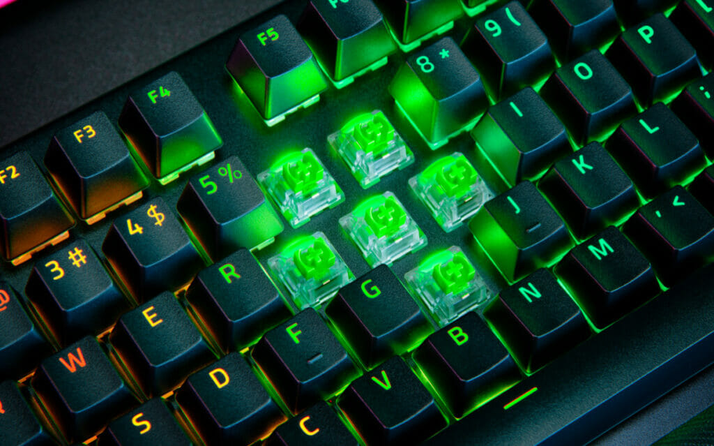 O novo teclado também apresenta a mais recente geração de switches mecânicos Razer, com opções de switches clicky verdes de feedback tátil ou switches lineares amarelos para ações suaves e silenciosas. Ambas as variantes têm alta durabilidade e resistem a até 100 milhões de cliques por tecla.
